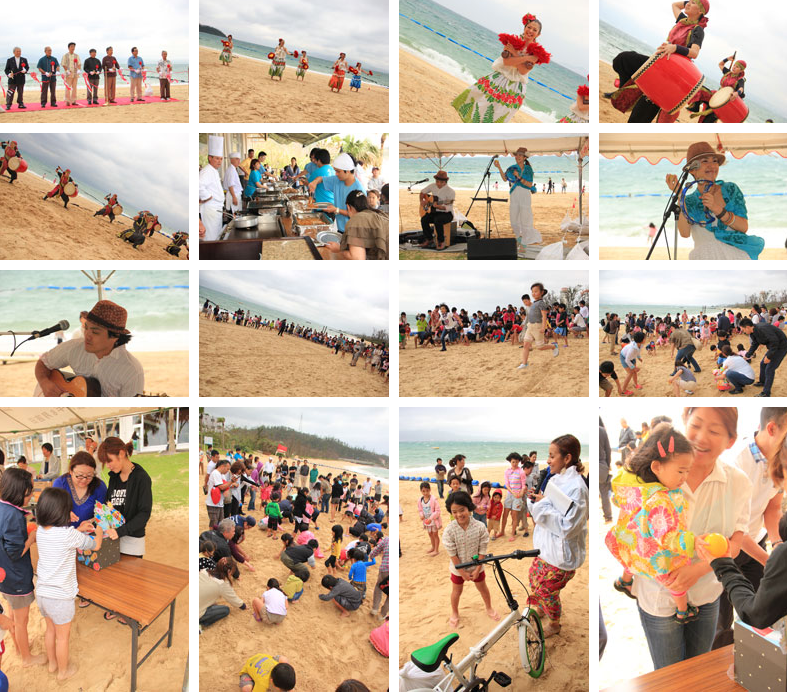 2013.04.07 ON-NA-GO 海開き 2013 in喜瀬ビーチ 2013年4月6日(土) 2013年4月6日(土) “ON-NA-GO海開き2013 in喜瀬ビーチ” が喜瀬ビーチにて行われました。当日はあいにくの天気でしたが、セレモニー、イベント、ランチバイキングなど多くの方に参加いただき賑いました。また来年の海開きにもイベントをご用意して、ON-NA-GOスタッフ一同皆様のお越しをお待ちしております。